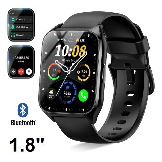 Dusonlap bluetooth fitness tracker waterproof smart watch - 1.85" - black (model: mt65)