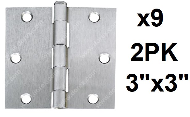 9 (2PK) DOREX stainless steel hinges - 3" x 3" (model: 84c32d33)