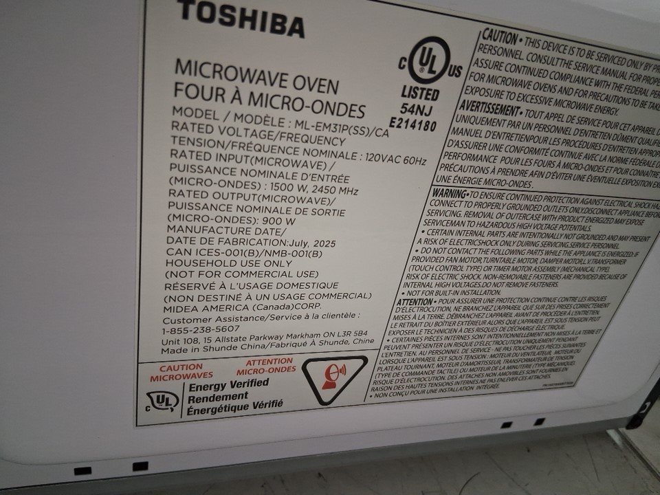 TOSHIBA COMPACT COUNTERTOP MICROWAVE OVEN - 1.2CU.FT/1500W - STAINLESS STEEL (MODEL: ML-EM31P(SS)/CA)