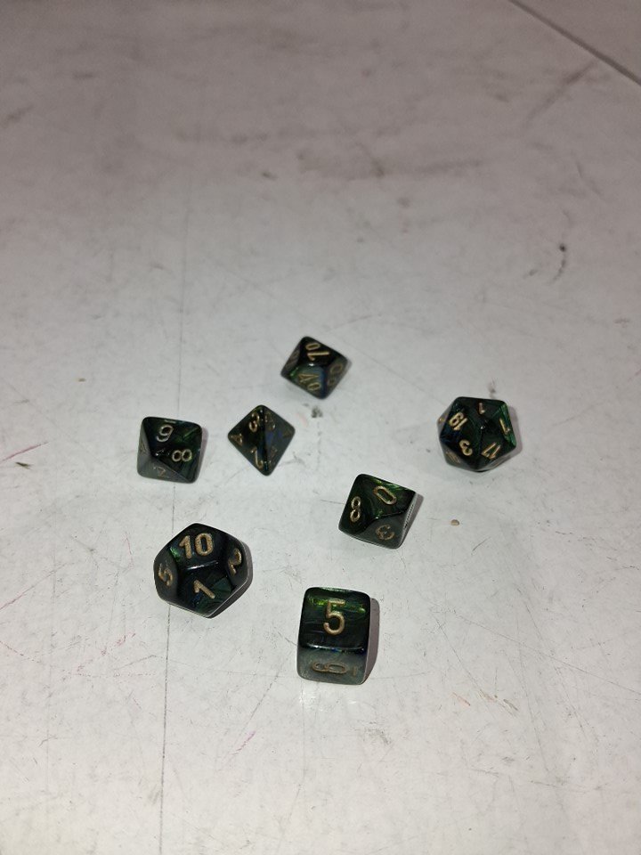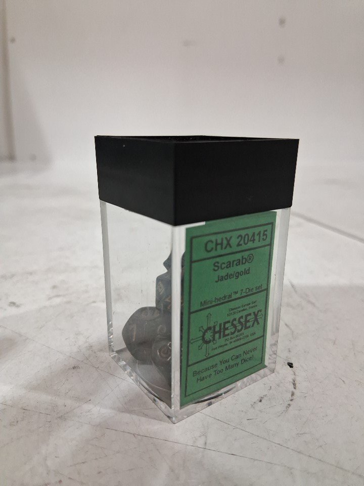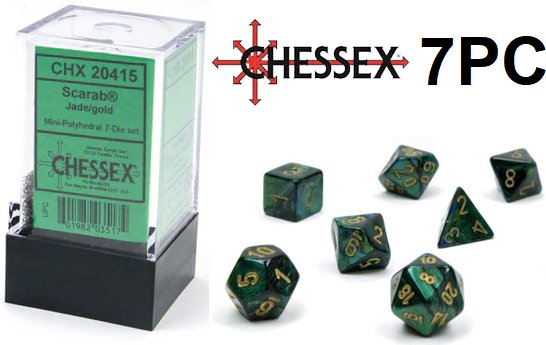 7PC CHESSEX MINI-HEDRAL dice set - D4 / D6 / D8 / D10 / D12 / D20 / D% - jade / gold (model: chx 20415)
