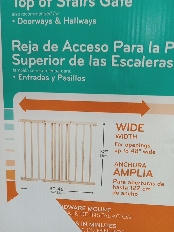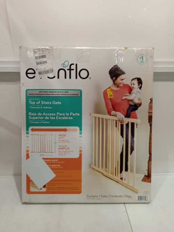 EVENFLO WALK-THRU TOP OF STAIRS extra wide BABY and PET GATE - 32" x 30" - 48" - NATURAL WOOD brown (MODEL: 1050)