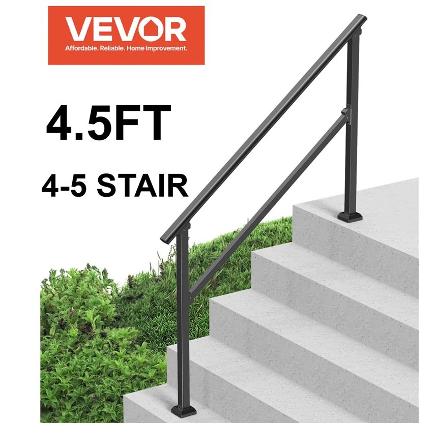 vevor 4 - 5 stair Transitional Carbon Steel Handrails for Outdoor Steps installation kit - 4.5FT - black (model: FG-45)