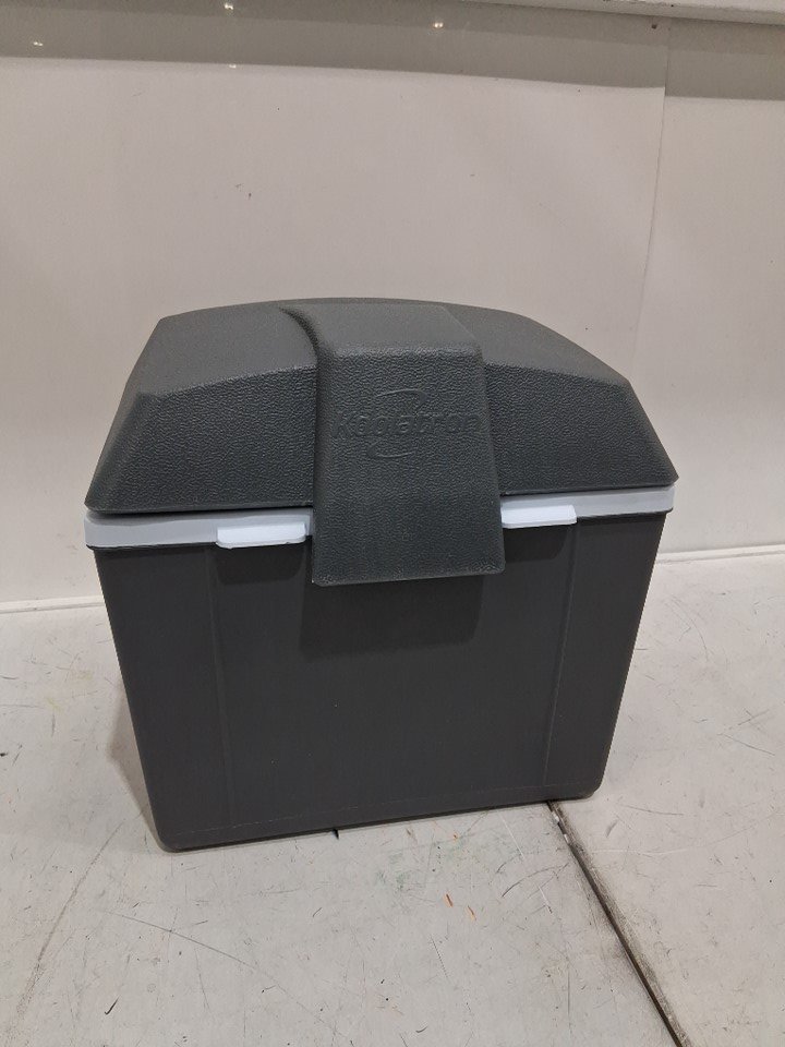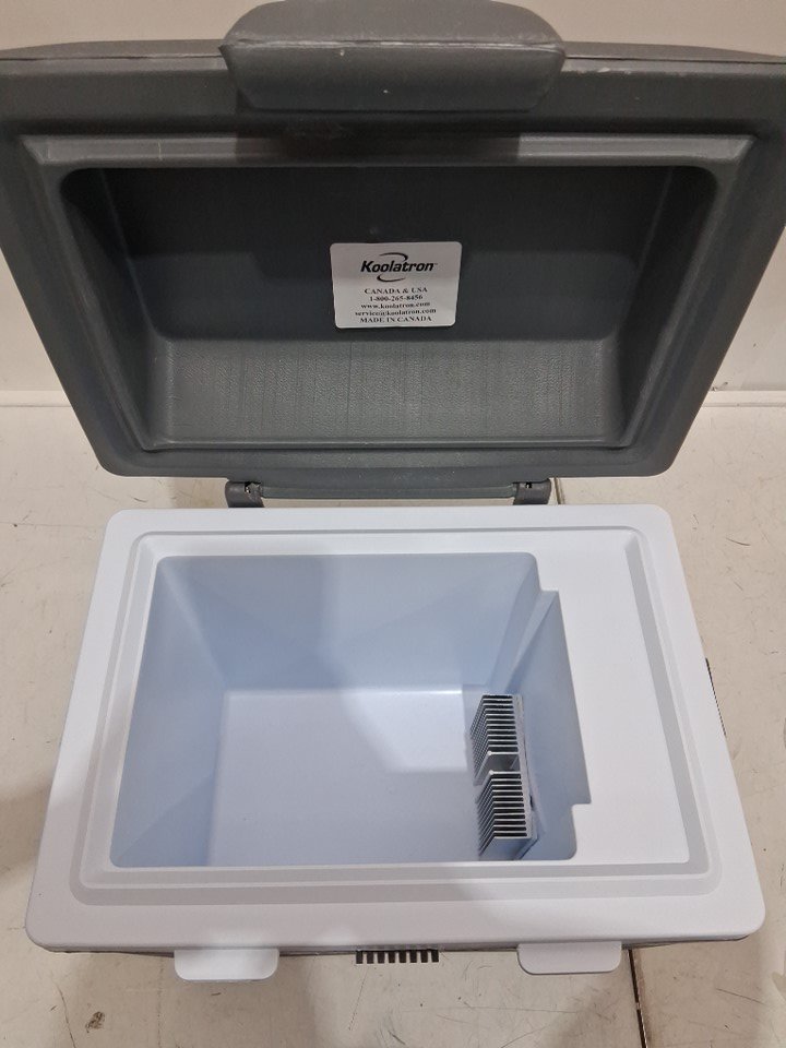 Missing Power cord can be replaced. Hinge is broken, please see photos. Can also be used as a normal cooler.