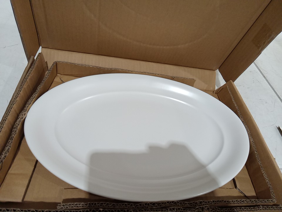 Rimmed Hand-Finished Stoneware Oval Serving Platter - 16" x 10.8" - Semi-Matte White (model:SW-PLTR-203406)