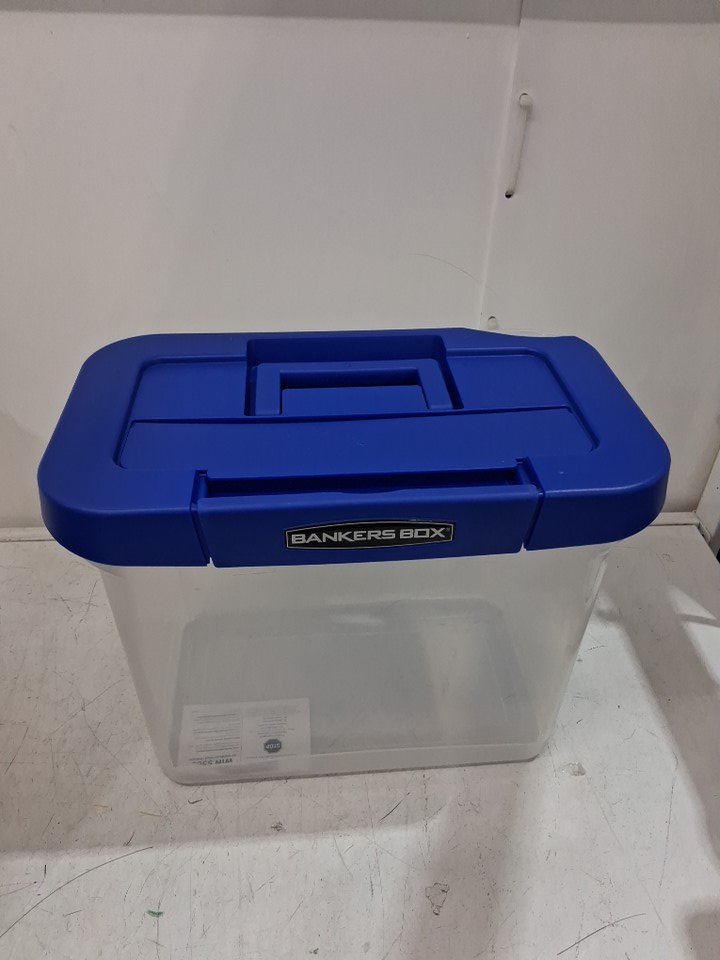Bankers Box Heavy Duty Portable File Storage Box With Modular Design -14.25" x 8.5" x 11" -Clear/Blue (Model: 31633055)