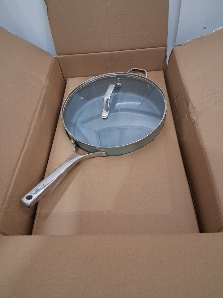 figmint 12" non-stick ceramic coated aluminum saute pan - sage green (model: 070-01-0527)