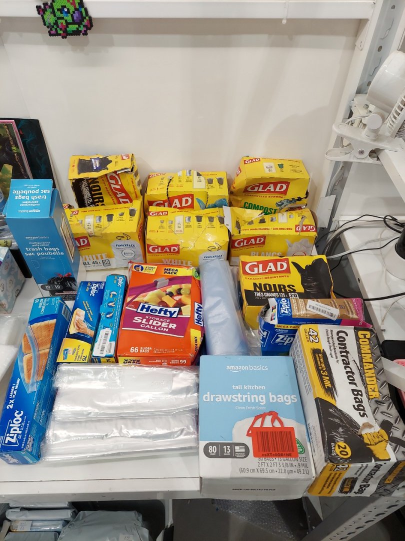 ASSORTED GARBAGE TRASH BAGS & FOOD STORAGE BAGS - MULTIPLE BRANDS AND SIZES **SEE PHOTOS**