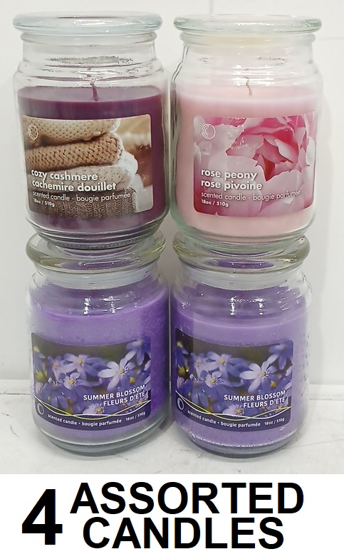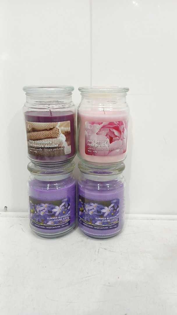 4 ASSORTED ih casa decor scented glass jar candle with lid - 18oz - summer blossom/COZY CASHMERE/ROSE PEONY