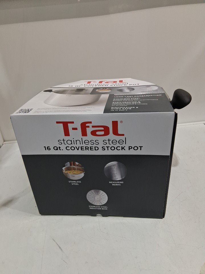 T-FAL OVEN SAFE STOCK POT WITH SILICONE HANDLES - 16QT - STAINLESS STEEL