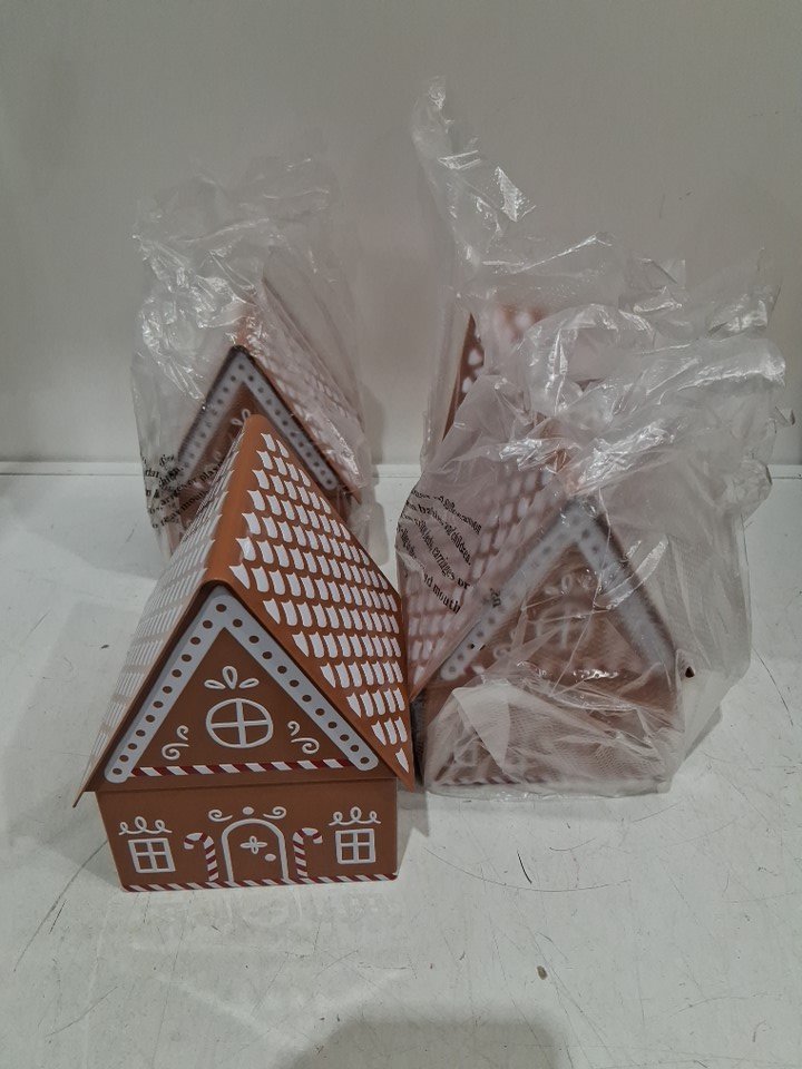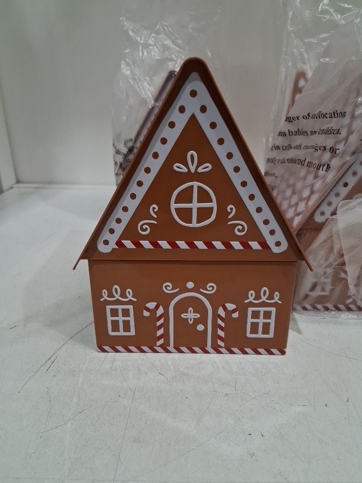 4 Wondershop Small Christmas Gingerbread House Tin Gift Box - BROWN/WHITE