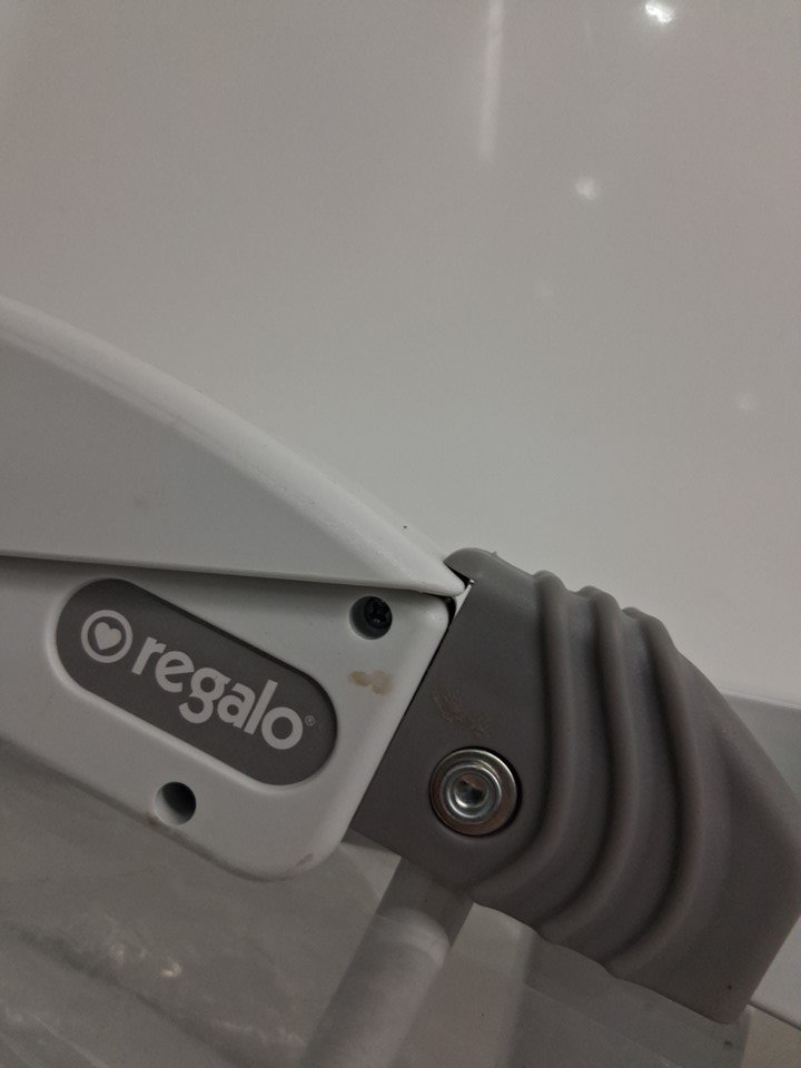 appears to have food residue on the handles and some dirt and debris on the poles and the bottom of the gate.