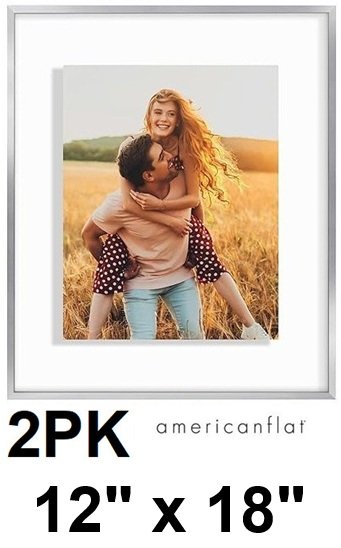 2PK americanflat plexiglass picture frame- 12" x 18" without mat- 11.5" x 8.5" with mat - Silver