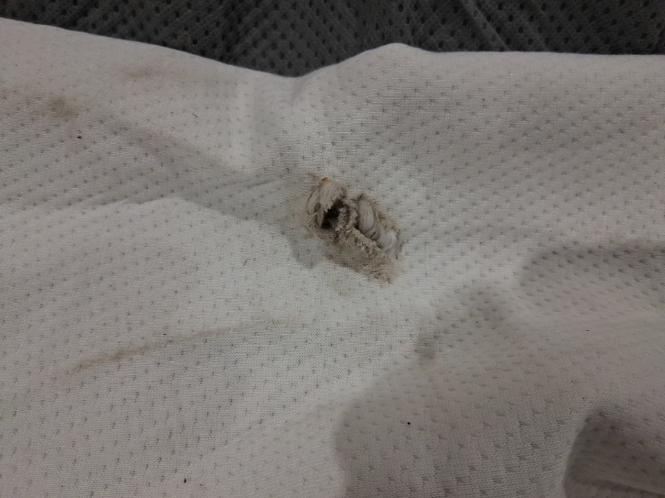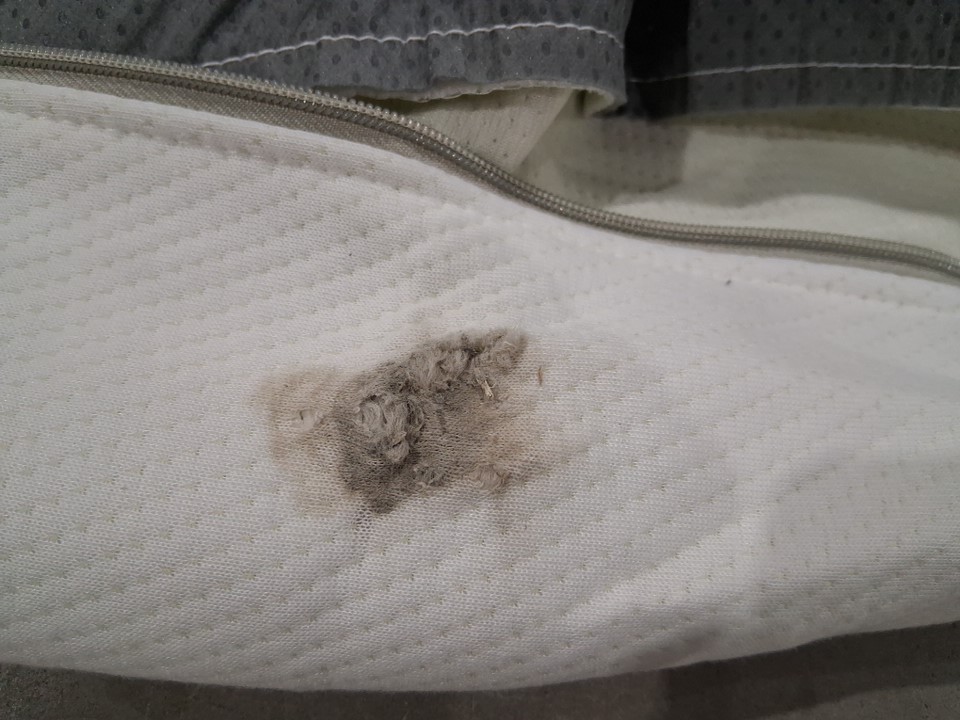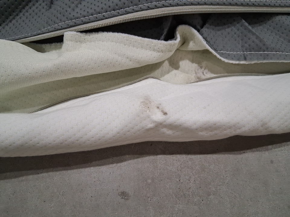 There are some dirt stains and small rips in a few places on the side of the box spring cover due to shipping - see photos. The stains can likely be spot cleaned fairly easily, and the rips are not large enough to present any usage issues, but customer may still want to repair/patch them to prevent them from ripping further. Outside of this damage to the cover, the spring appears to be in new condition.