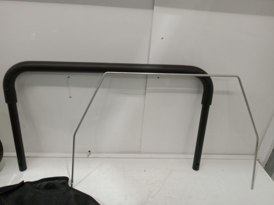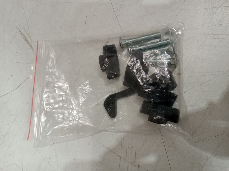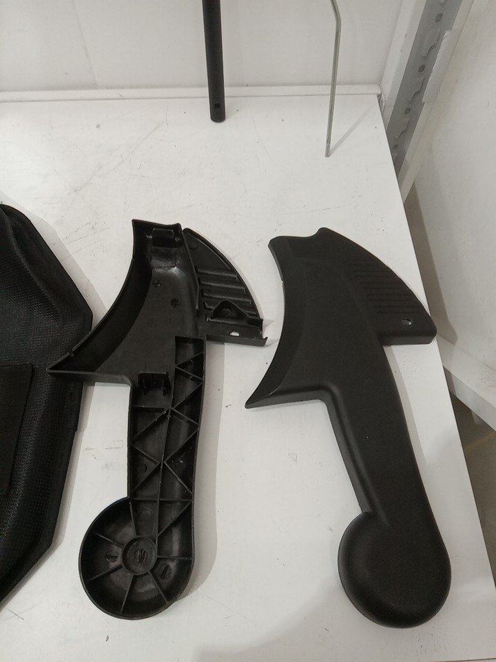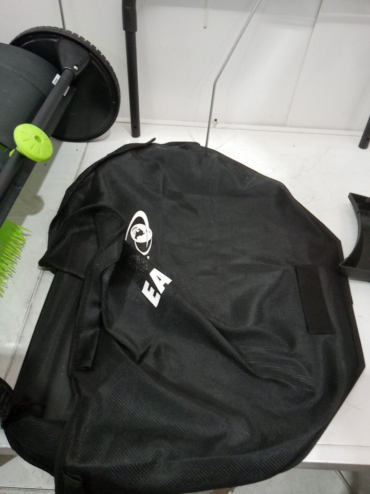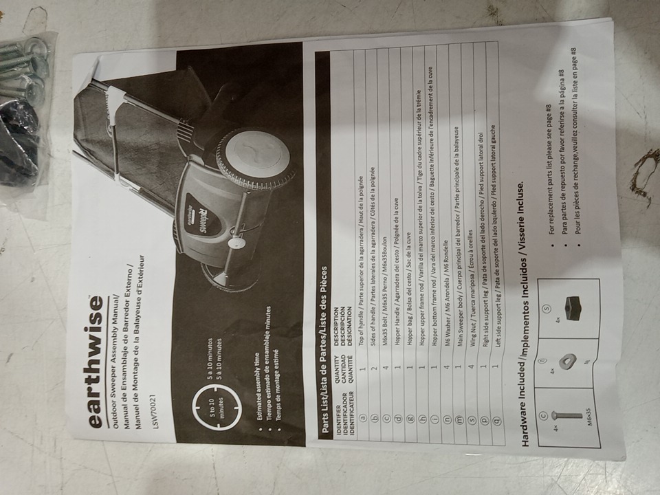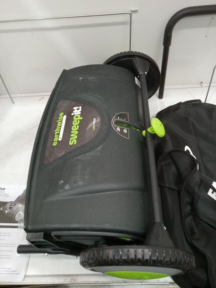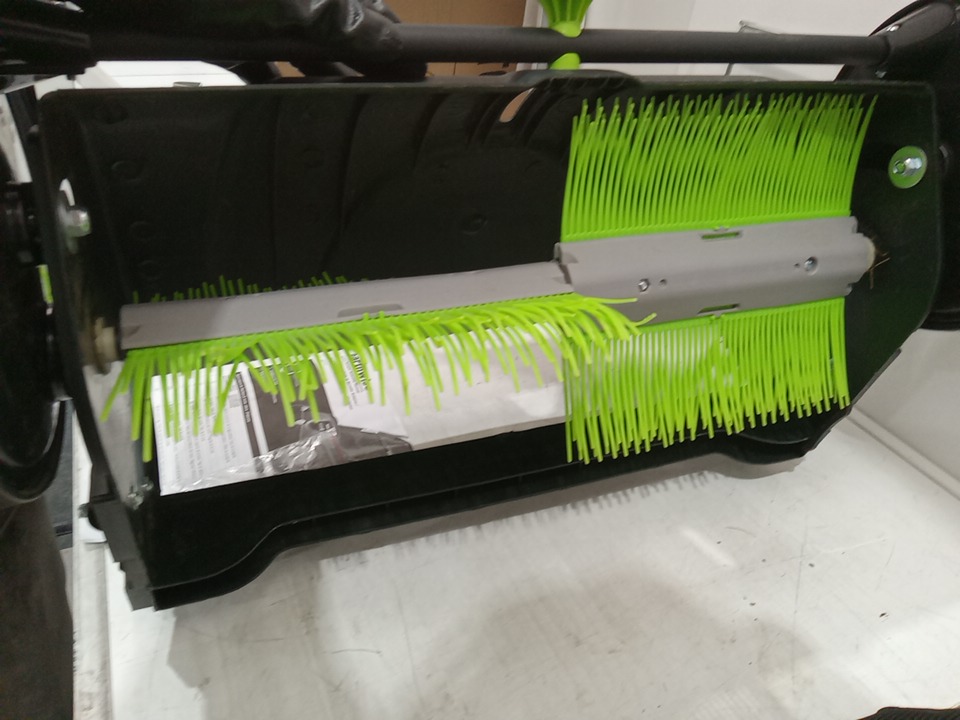 There are minor grass residue, there are scratch marks on the sides of the sweeper sides. There are installation and scratch marks on the handles due to previous use. May require additional generic hardware to install the product. (Please see photos)