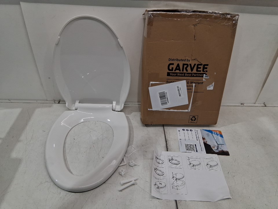 Homfan Durable Elongated Toilet Seat with Soft Close - 18.4" x 14.2" - White (Model: TS19W)