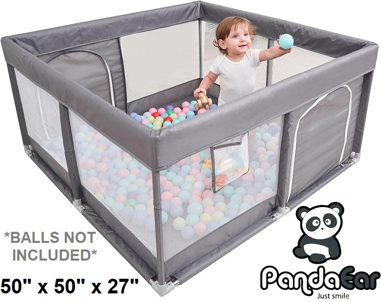 PANDAEAR STURDY Baby Playpen WITH BREATHABLE MESH FABRIC - 50" x 50" - grey