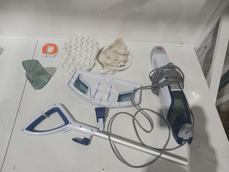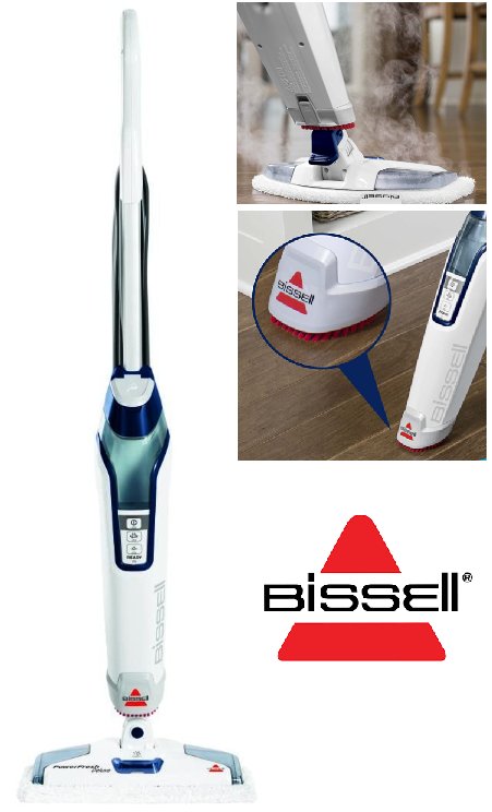 bissell power fresh deluxe steam mop with spotboost scrub - 25ft cord/1500w - white (model: 1806c)
