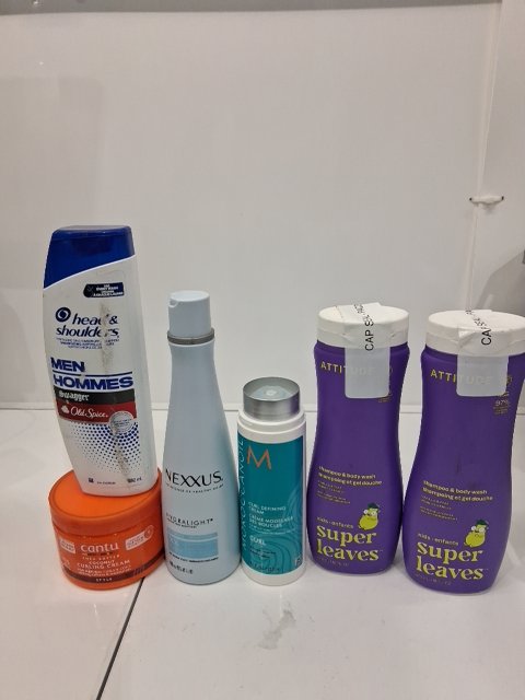 6 ASSORTED HAIR CARE PRODUCTS - ASSORTED SIZE TYPES AND BRANDS