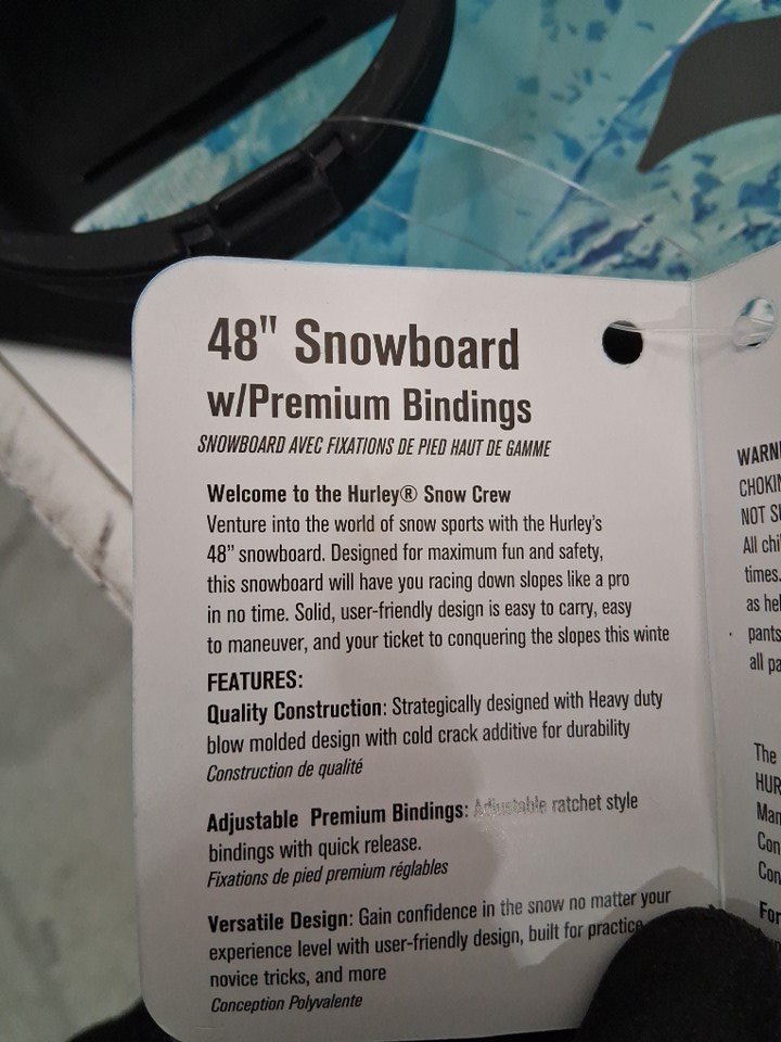 hurley kids beginner snowboard with premium bindings - 48" - ages 6 to 12 - multicolor (model: 1703014b)