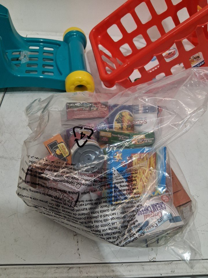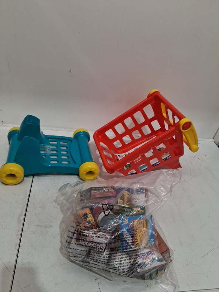 Battat Deluxe Toy Shopping Cart with Pretend Play Food Accessories - red/blue - (model: ‎BT4816C1Z)