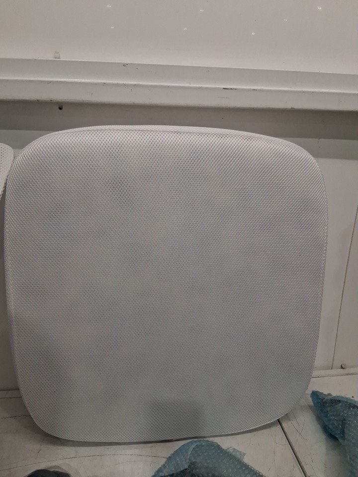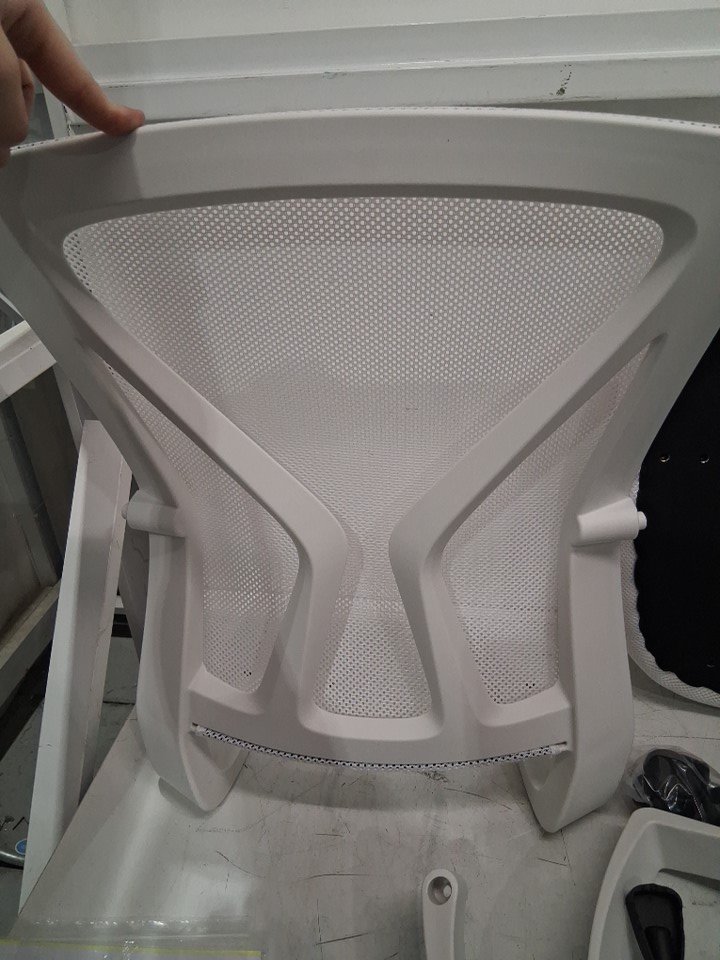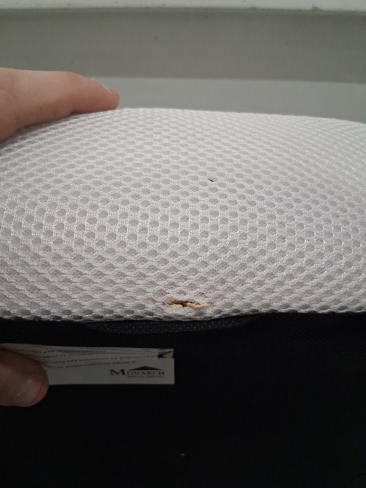 The is one small tear at the back edge of the chair due to the shipping process.