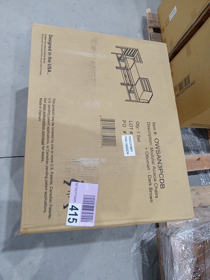 3PC Sanibel Modular Acacia Chairs and Ottoman set - 48" x 30.25" - 23.25" x 19" - dark brown / cream (model:OWSAN3PCDB)
