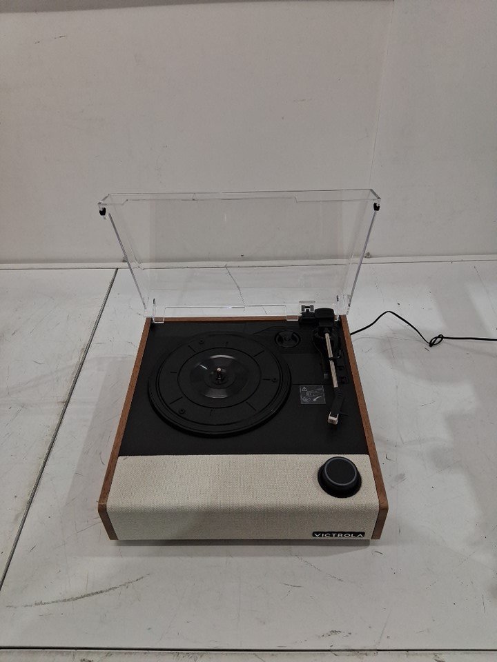 The dust cover is cracked in 2 places and one of the corners is a bit dented (See photos) Tested for power only not function