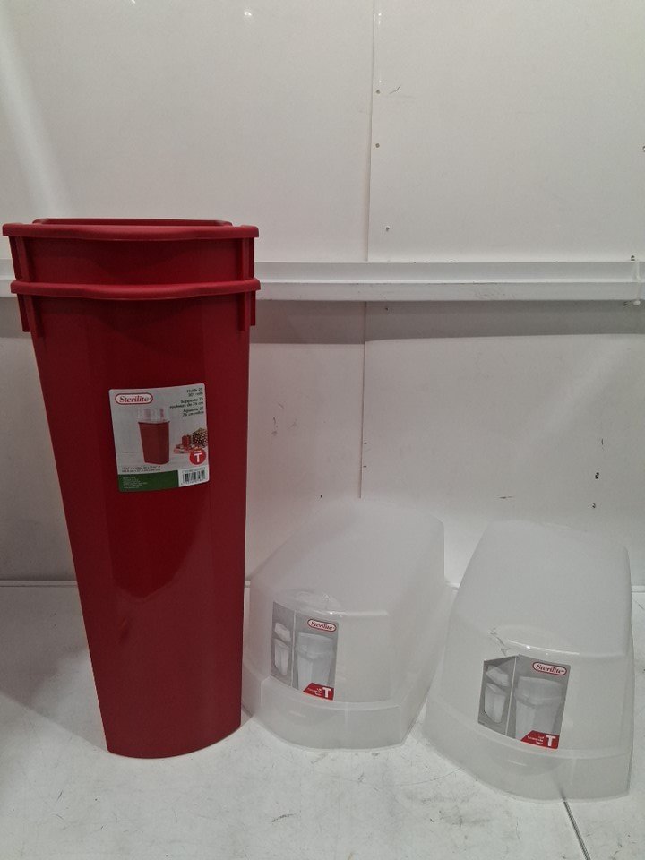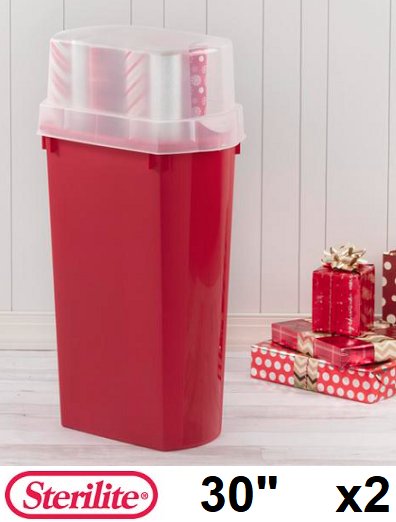 2 STERILITE wrapping paper storage bins - t-base - 30" height - red (model: 1971)
