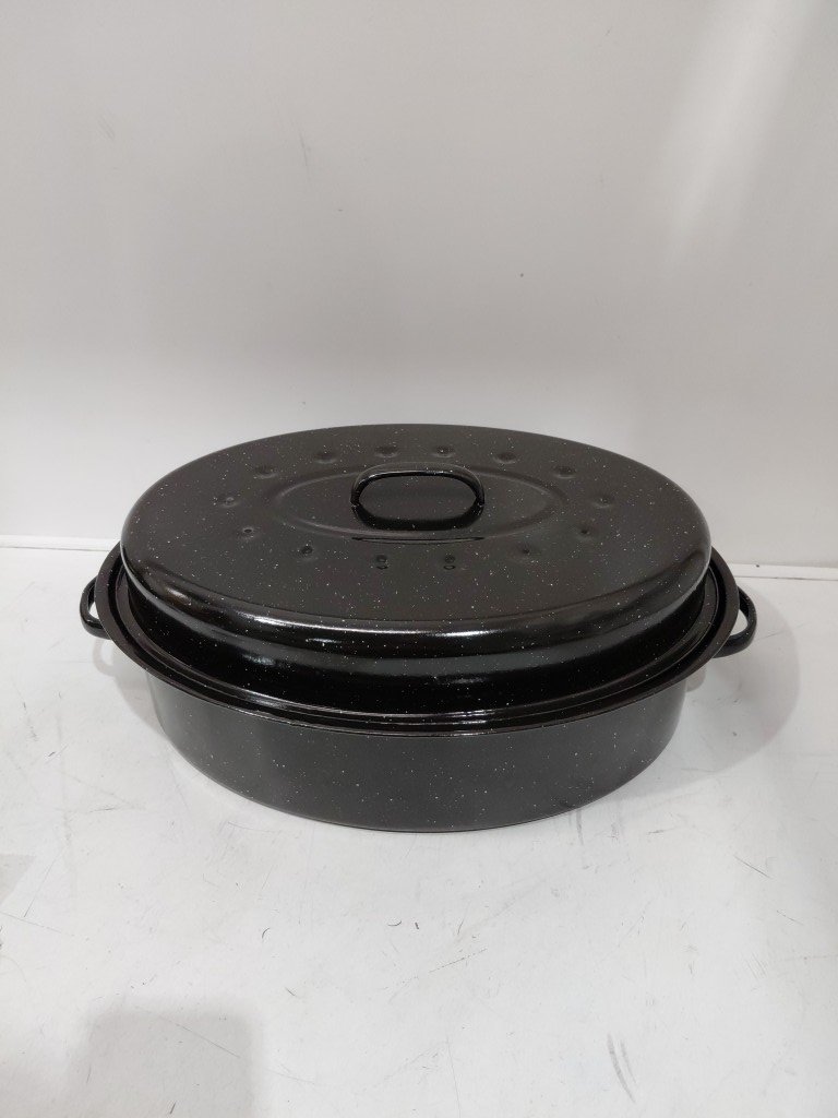 STARFRIT OVAL ENAMELED CARBON STEEL OVEN ROASTER PAN - 10QT - BLACK