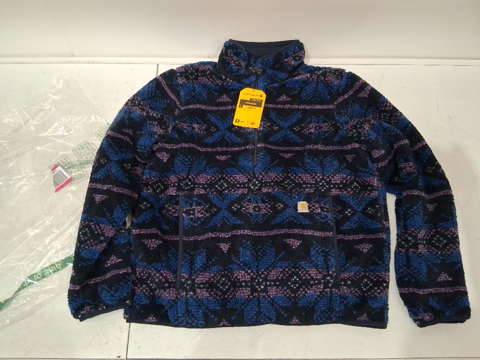 Women's Carhartt Loose Fit Fleece Pullover - MEDIUM - Navy Fairisle (STYLE: OJ6470-W)
