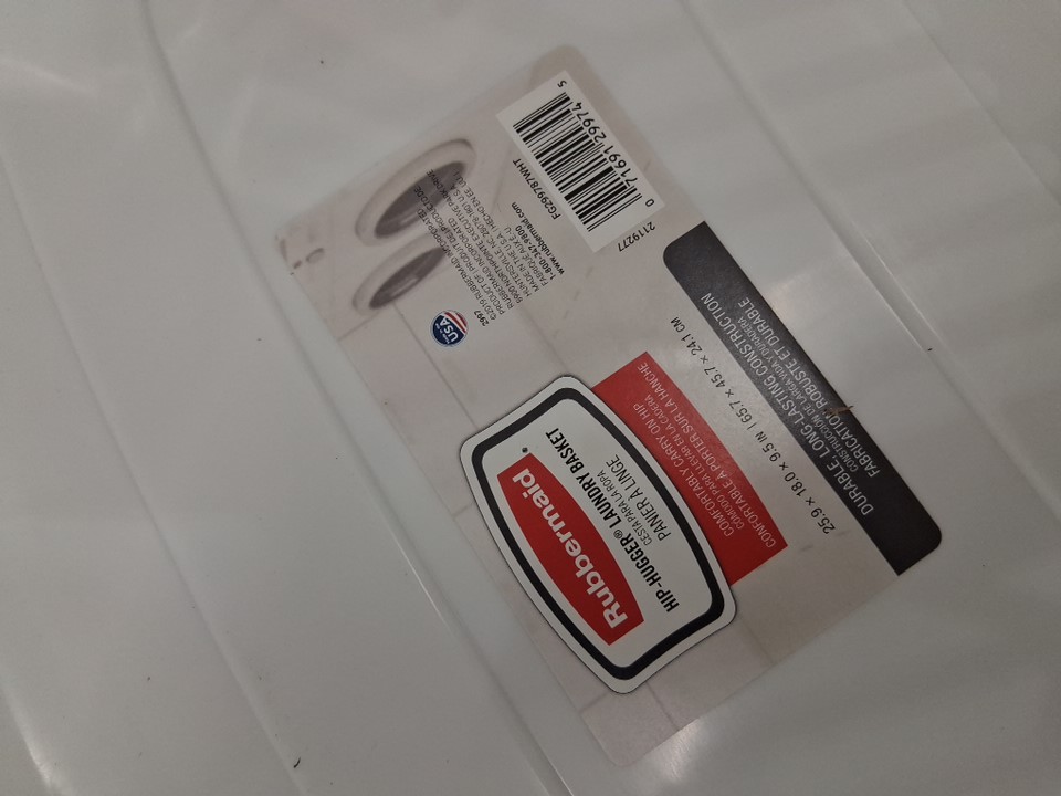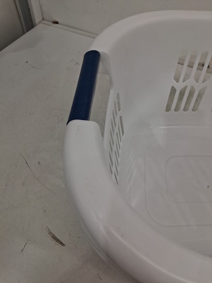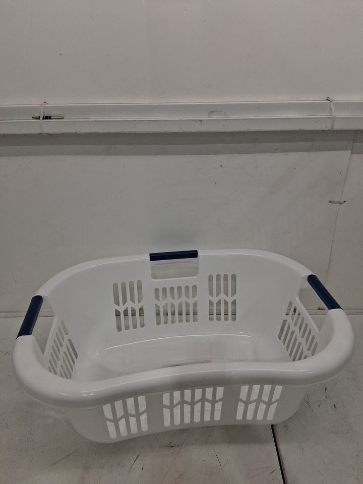 RUBBERMAID HIP HUGGER LAUNDRY BASKET - LARGE (25.9"x18"x9.5") - WHITE/navy (model: fg299787wht)