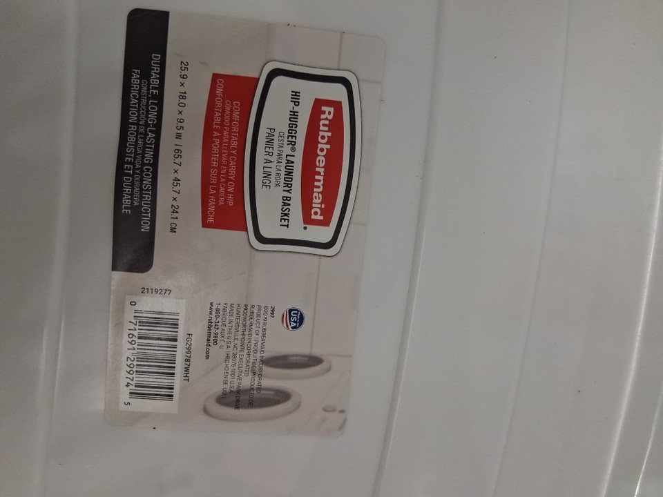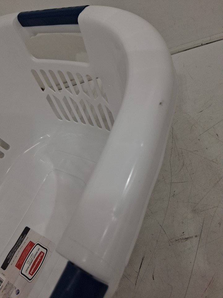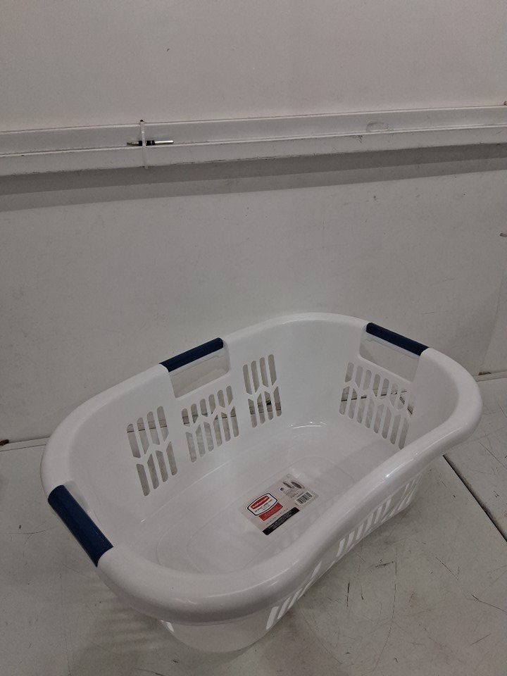 RUBBERMAID HIP HUGGER LAUNDRY BASKET - LARGE (25.9"x18"x9.5") - WHITE/navy (model: fg299787wht)