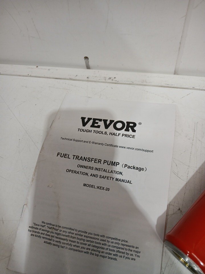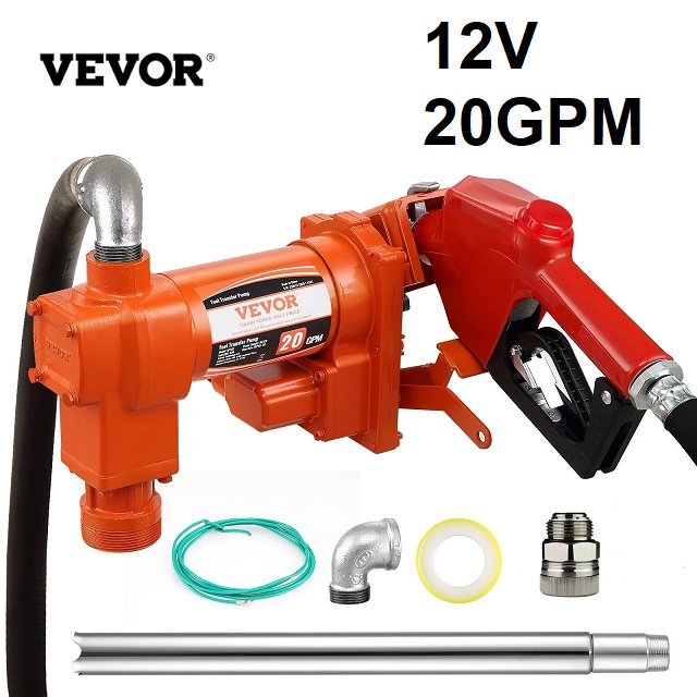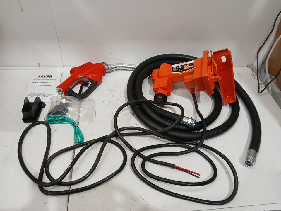 vevor Fuel Transfer Pump with Automatic Nozzle and discharge hose - 12v - 20gpm - red/orange - (model:kex-20)