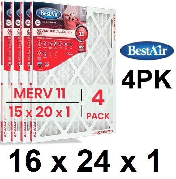 4pk BestAir pleat MERV 11 Air Filter - 16" x 24" x 1" - white