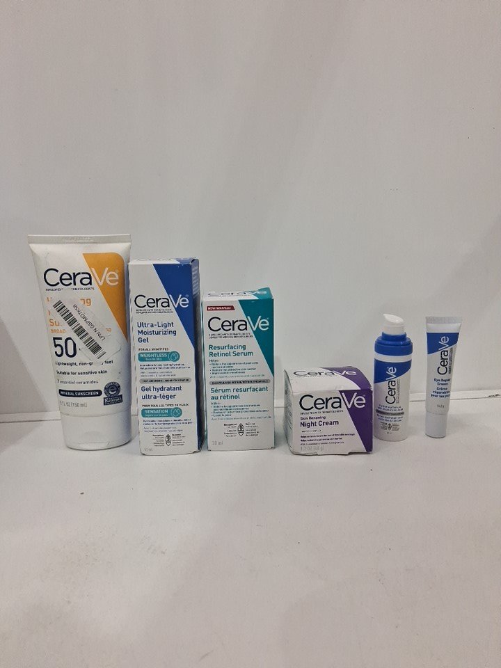 6 ASSORTED CERAVE SKIN CARE PRODUCTS - VARIOUS TREATMENTS