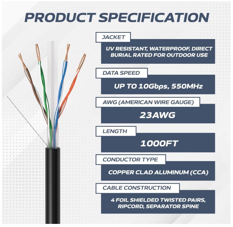 Cables direct online outdoor cat6 ethernet cable - 1000ft - black - (model: 8541697446)