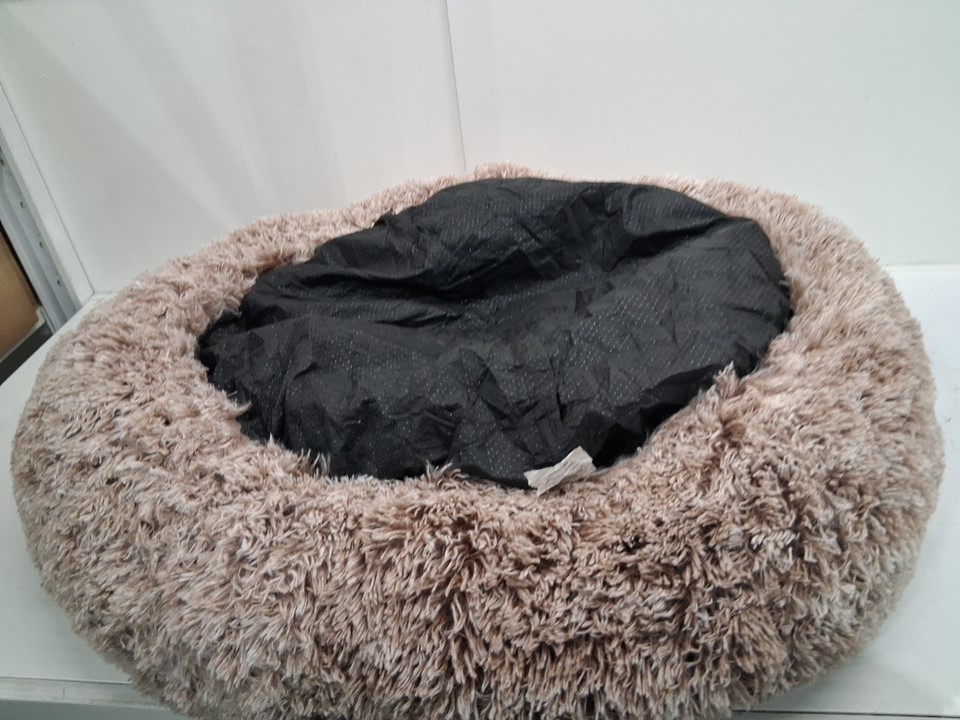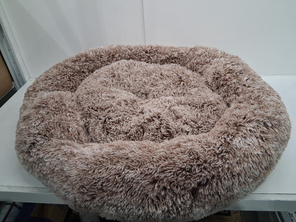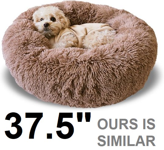 Premium plush calming dog bed with removable pillows, non-slip bottom - 37.5" - White/tan/brown
