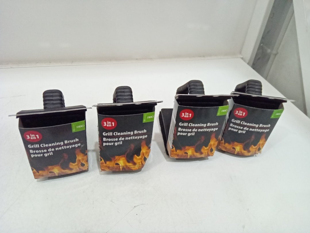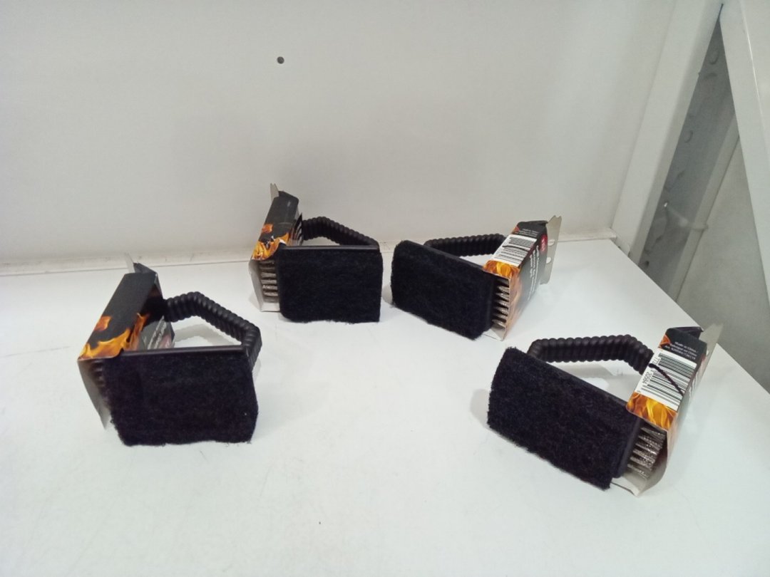 4 3-in-1 Mini Barbecue Grill Brush with Steel Wool, Brush, and Scraper - Black