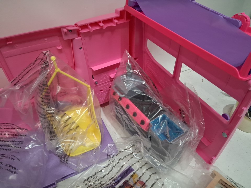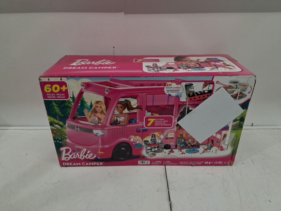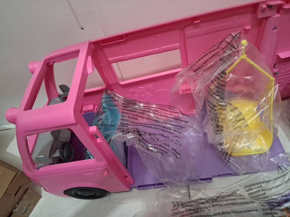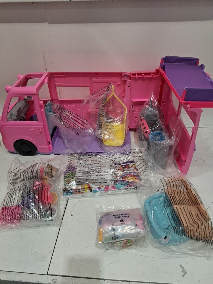 60+PC Barbie Dream Camper Playset With Roof Tent and BBQ Grill (model: ‎HRJ78-9564)
