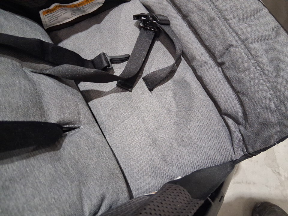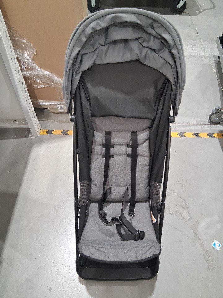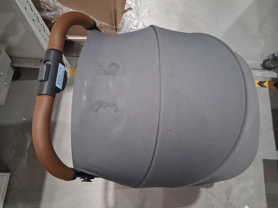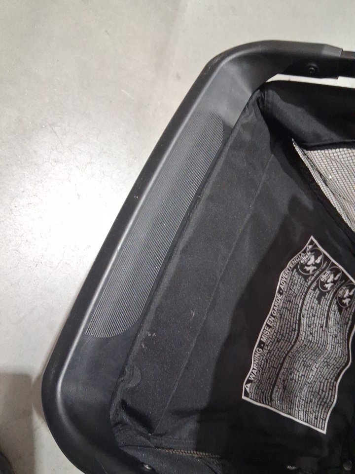 Stain on seat and on top of shade, wheels dirty from previous use, see photos