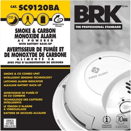 2 BRK smoke & carbon monoxide alarm with battery backup feature (model: SC9120BA)