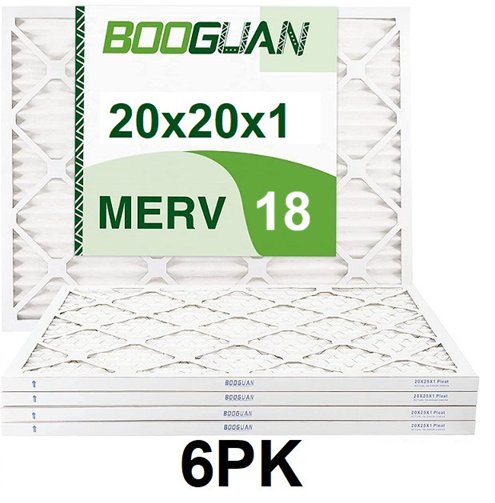 6PK BOOGUAN MERV18 PLEATED AC FURNACE AIR FILTER - 20" x 20" x 1"