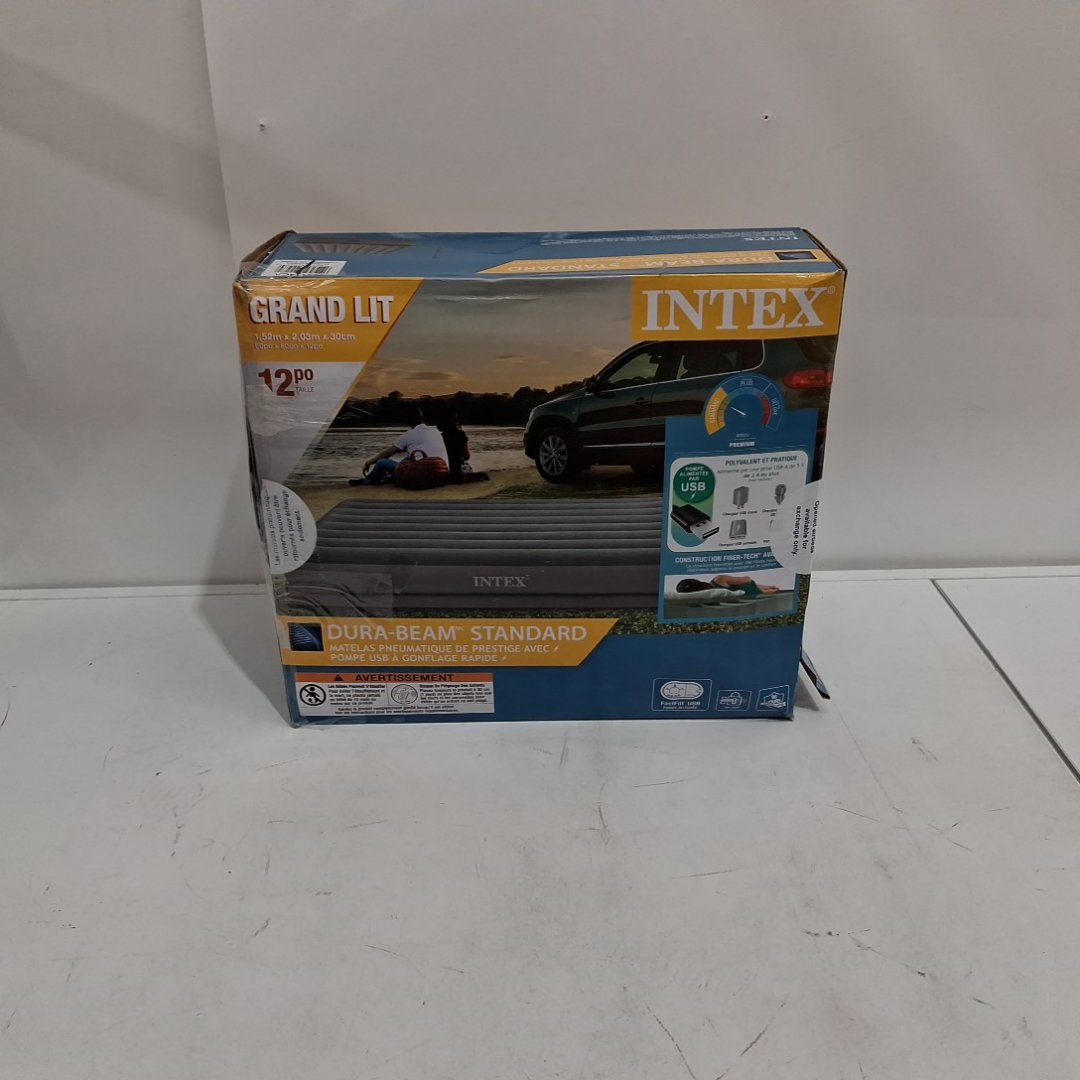intex dura-beam FAST FILL built in usb pump air mattress - twin - 14" high - Grey (model: 1637usb)