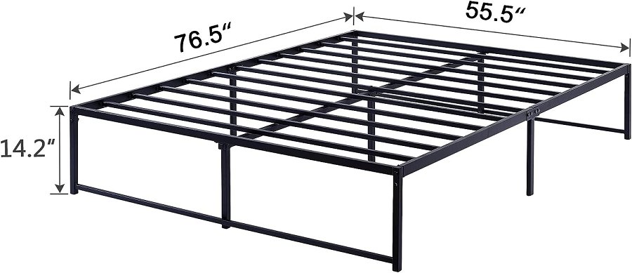 Vecelo metal platform bed frame with slat support - black - full (model: khd-yt-f09)