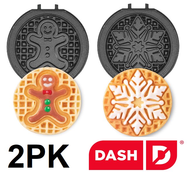 2PK DASH MultiMaker REMOVABLE Mini WAFFLE PLATES - gingerbread man & snowflake (model: diwch12gcpdq)