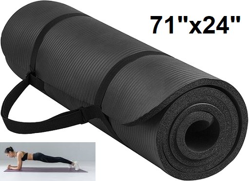 AmazonBasics 1/2" Extra Thick Anti-tear Yoga/exercise Mat With Carrying Strap - 71" X 24" - Black