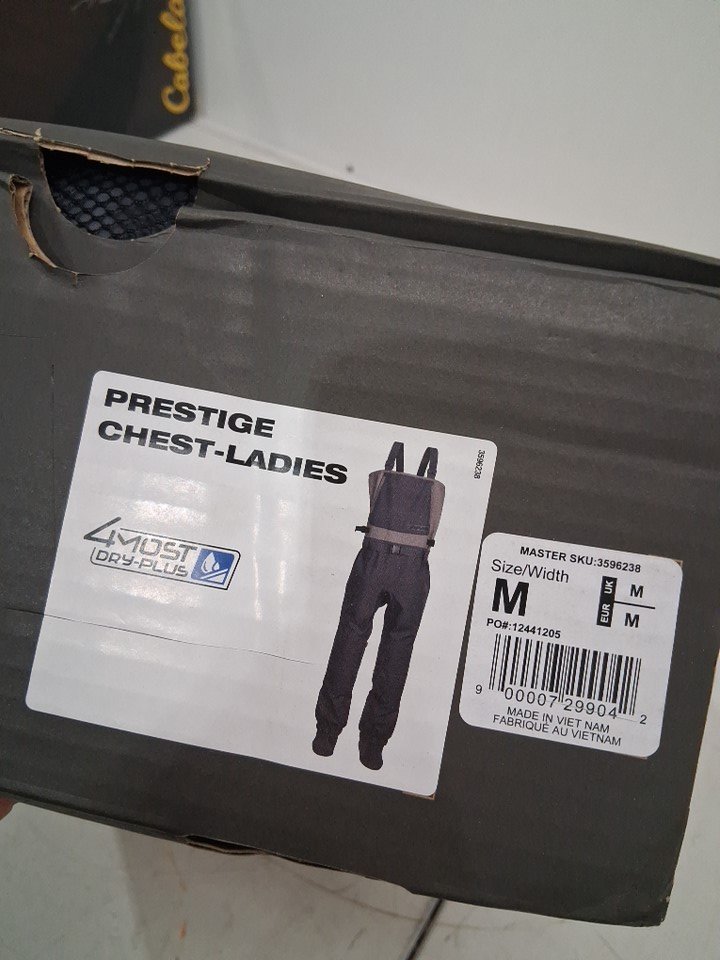 WOMENS BPS WHITE RIVER FLY PRESTIGE STOCKING-FOOT CHEST WADERS - MEDIUM - GREY