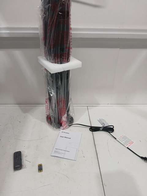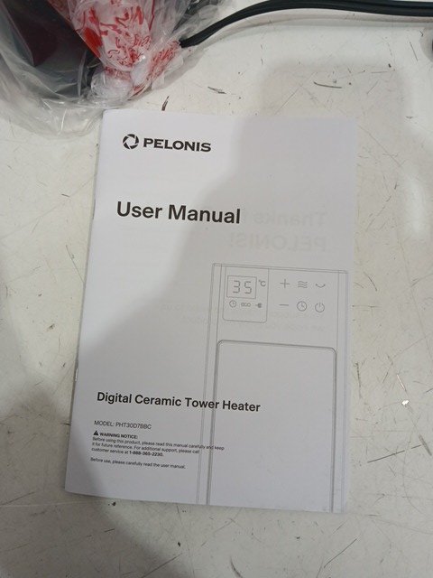 pelonis 30” ceramic tower space heater with adjustable thermostat, 75° oscillation, remote control & 12h timer - tip-over switch & overheating protection - 1500w - black (model: pht30d7bbc)