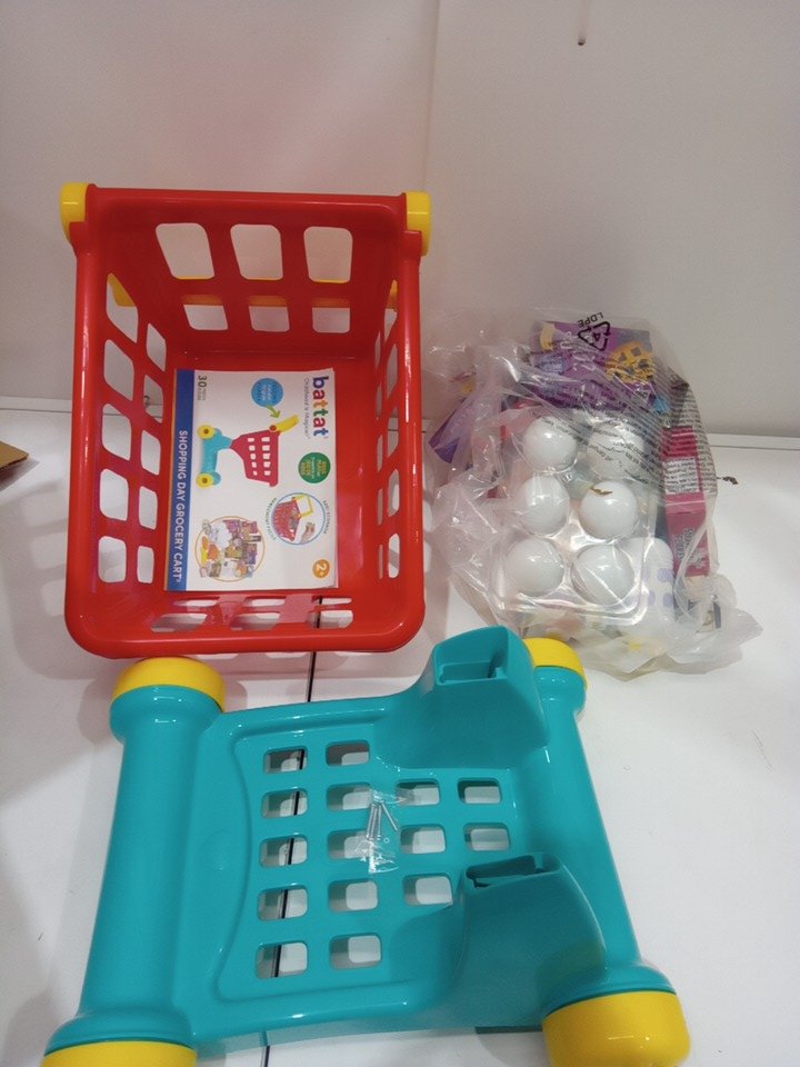 Battat Deluxe Toy Shopping Cart with Pretend Play Food Accessories - red/blue - (model: ‎BT4816C1Z)