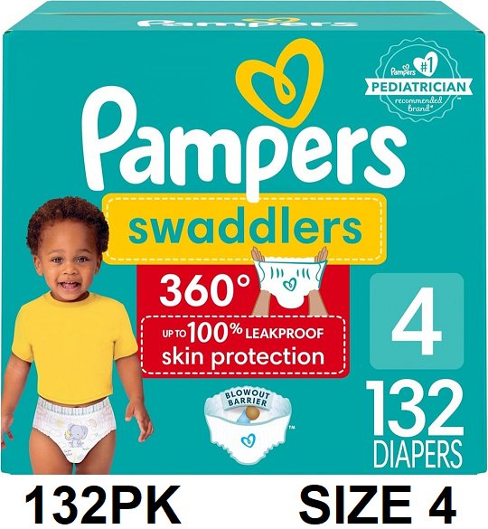 132pk pampers swaddlers 360° pull-on disposable diapers - size 4